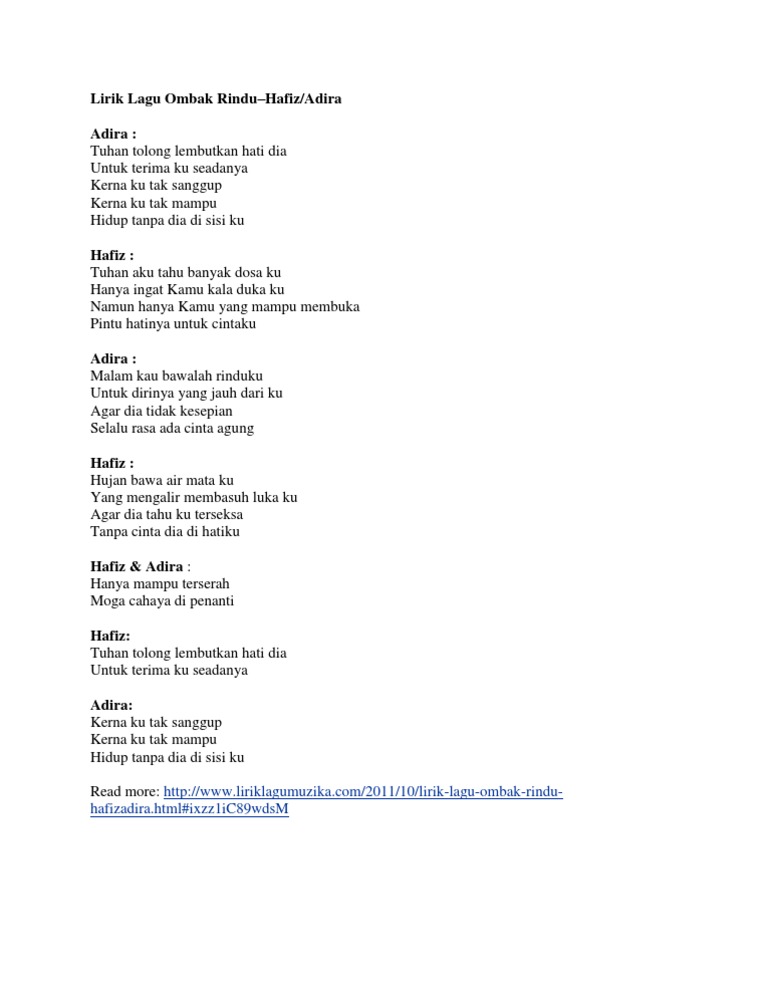 Berbekalkan saat mimpiku di perjalanan ini. Tak mampu kutahan lagi Gemuruh didalam hati Dirinya. Ada lagi lirik yang dicari 10-50rbbulan yaitu lirik lagu hanya rindu seberkas sinar pedih first love.